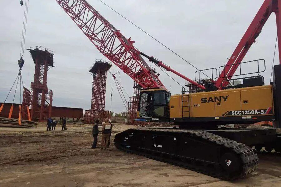- SANY SCC1350 (135 тонн): Мощная машина, занимающая промежуточное положение в линейке. Оптимальное решение для строительства энергообъектов, мостовых переходов, работы на крупных складах металлоконструкций. Отличается высокой грузоподъемностью и вылетом стрелы.